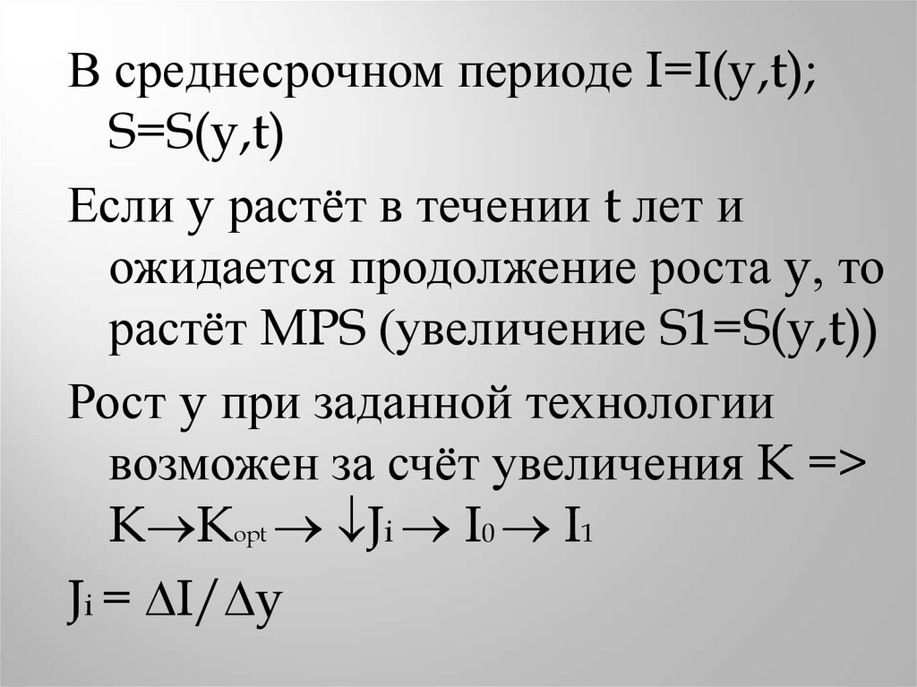 В среднесрочном периоде I=I(y,t);S=S(y,t)