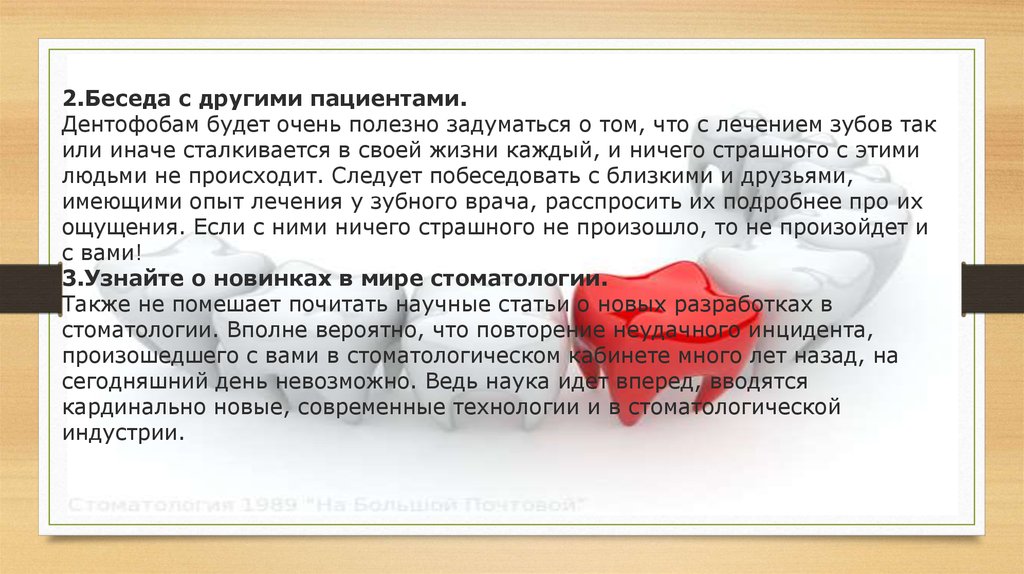помогут дентофобам посмотреть на свои страхи с объективной точки зрения.