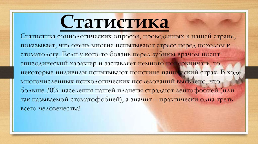 ощущений во время сверления, пломбирования или удаления зубов. Именно страх