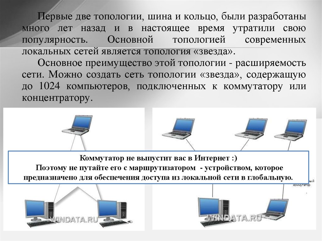 Первые две топологии, шина и кольцо, были разработанымного лет назад и в настоящее время утратили свою