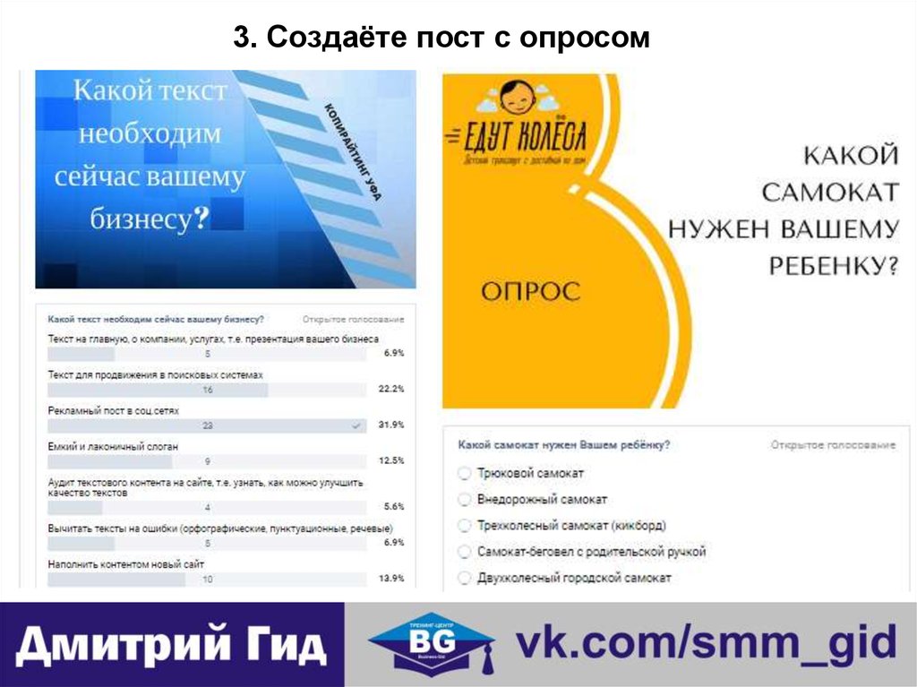 3. Создаёте пост с опросом7.