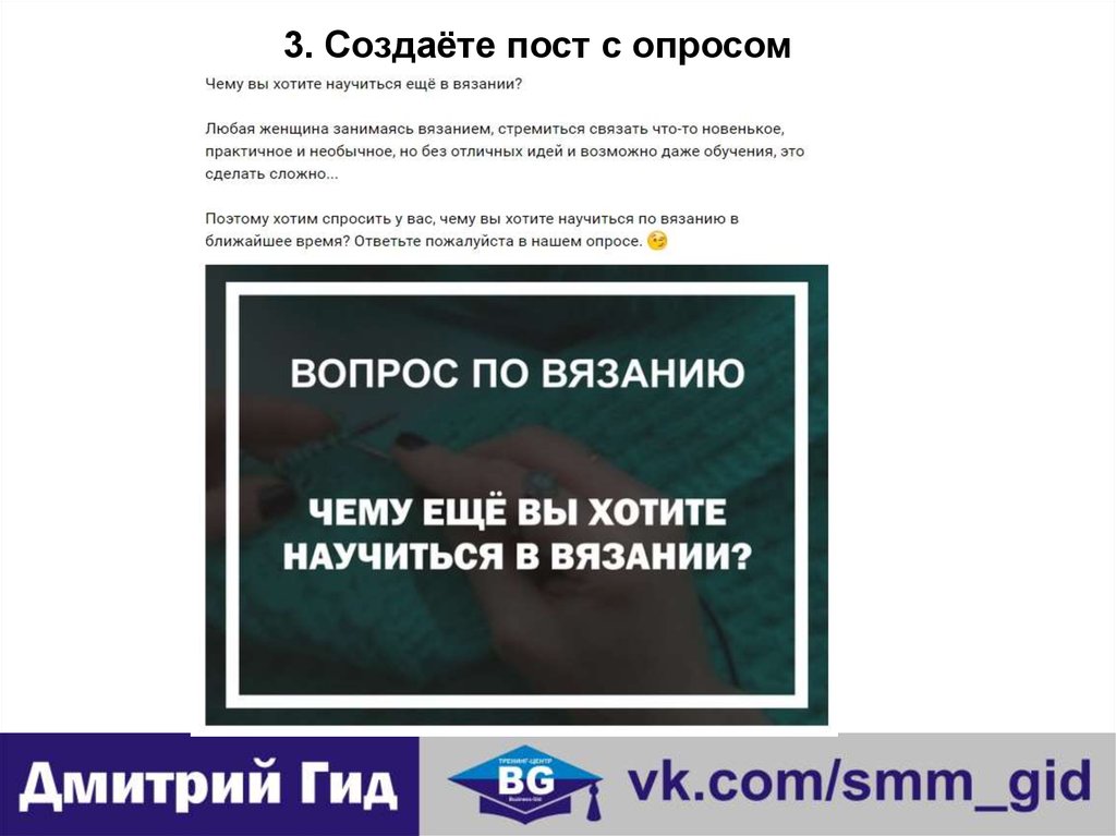 3. Сделать пост с опросом для выявления потребностей ЦА