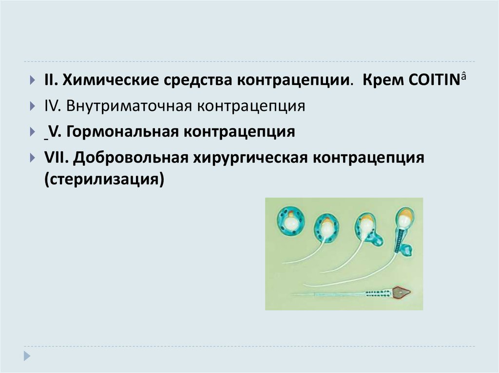 II. Химические средства контрацепции. Крем COITINâIV. Внутриматочная контрацепция