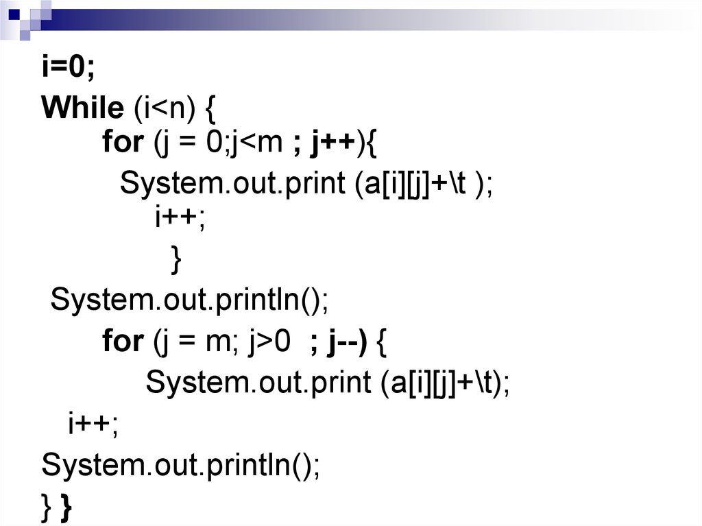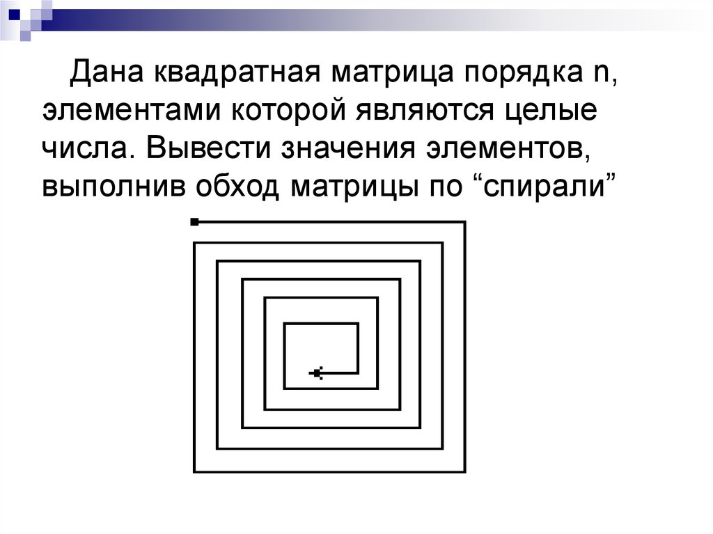 {Просмотр элементов матрицы по "спирали" }int i=0;