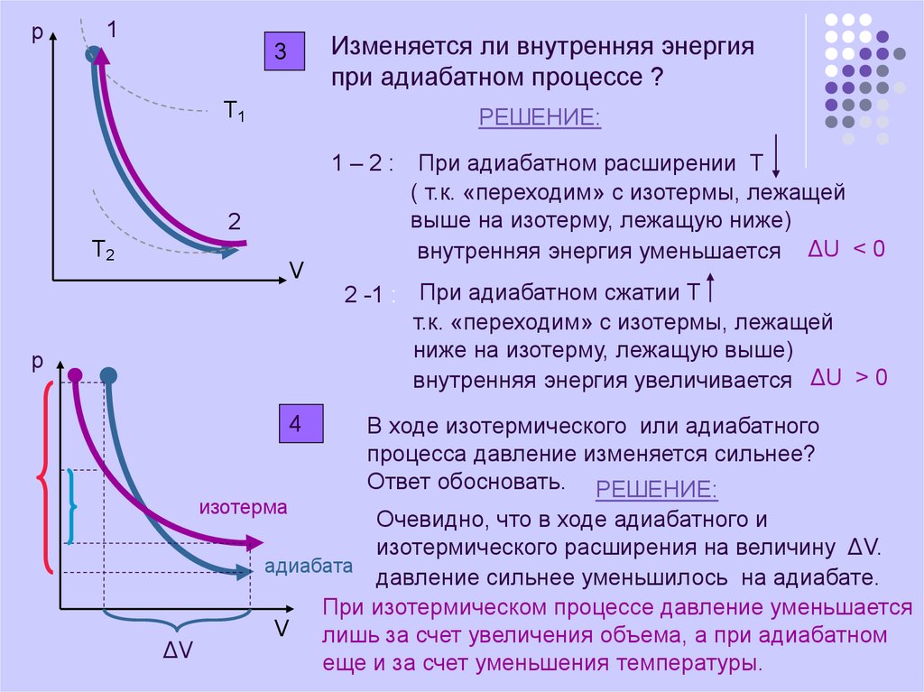 Q = 0 , ΔU = 0 + А , ΔU = 0 - А