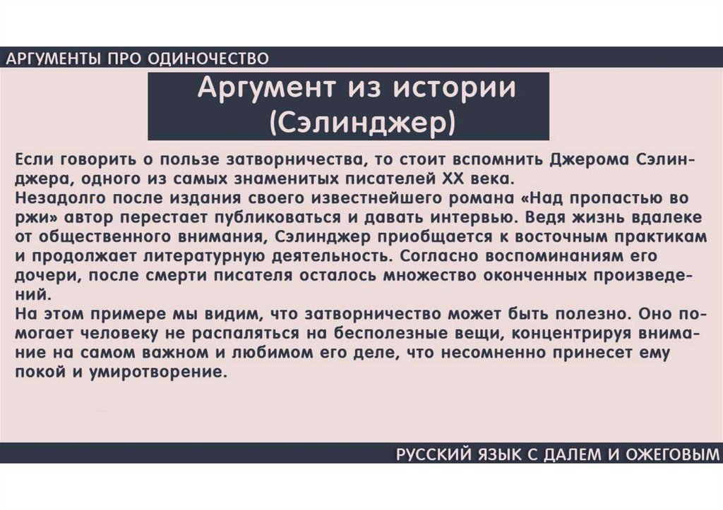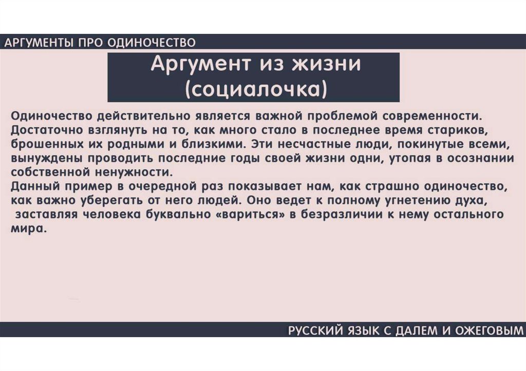 Аргументы про одиночество