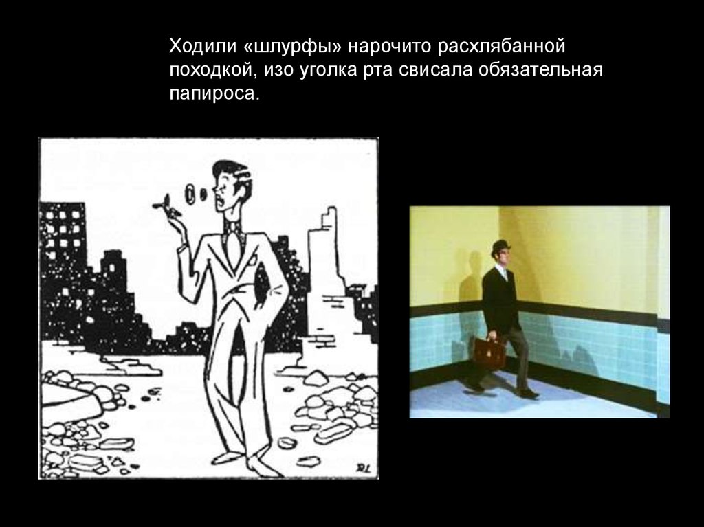 Ходили «шлурфы» нарочито расхлябаннойпоходкой, изо уголка рта свисала обязательная