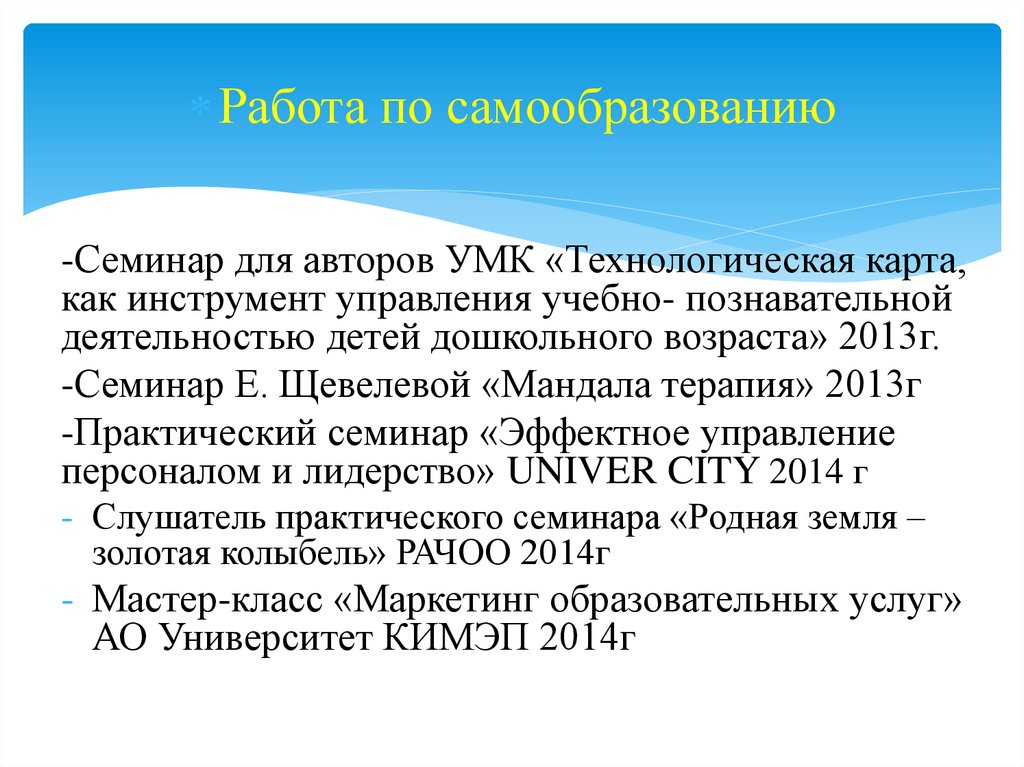 Работа по самообразованию-Семинар для авторов УМК «Технологическая карта,