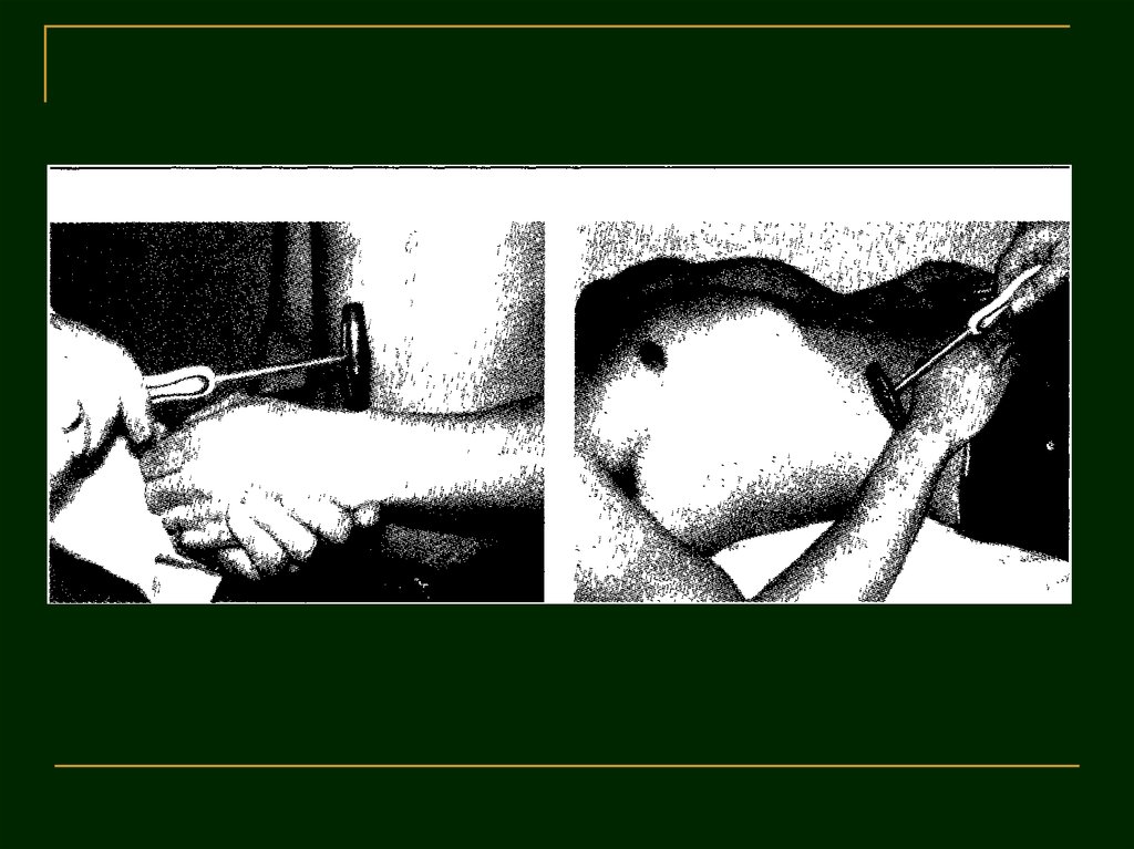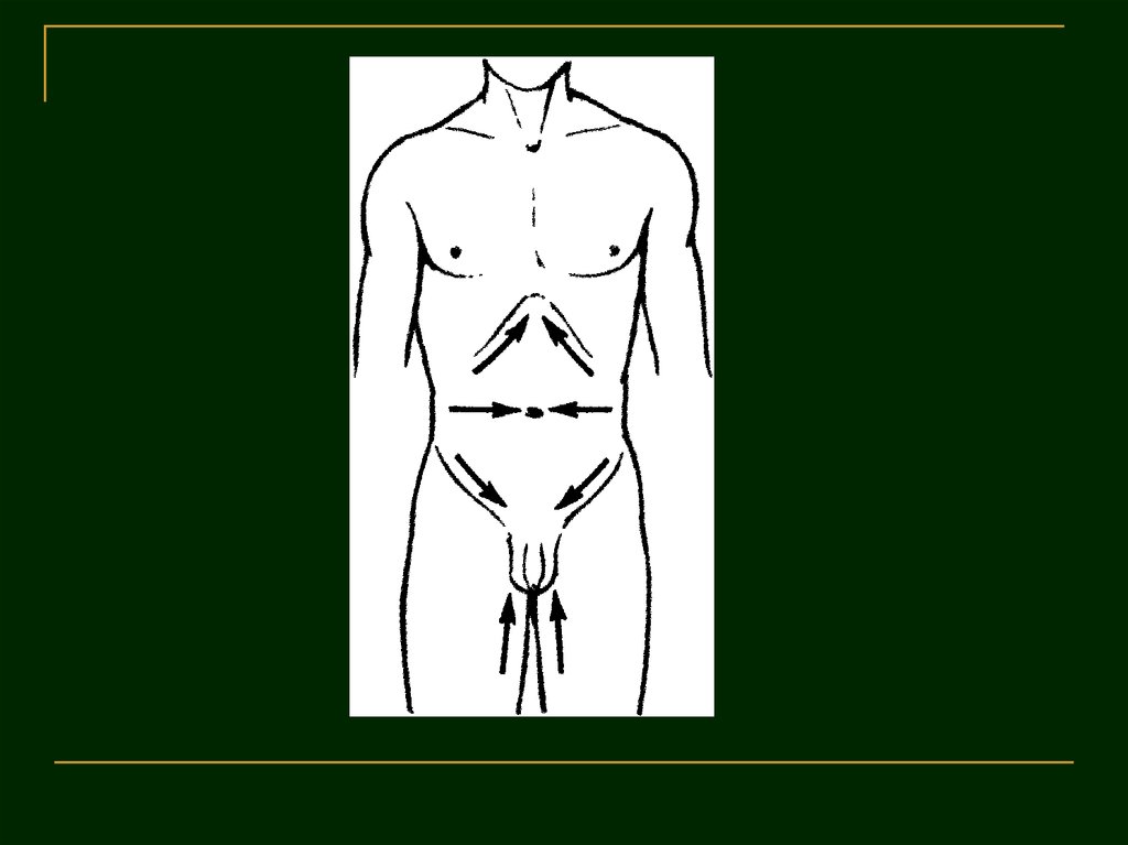 Постукивание молоточком по лобку на 1-1,5 см справа и слева от