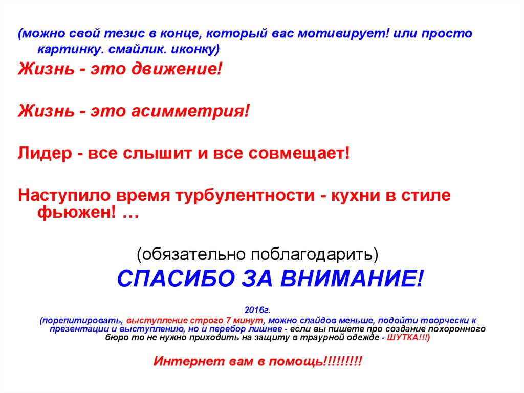 (можно свой тезис в конце, который вас мотивирует! или простокартинку. смайлик. иконку)