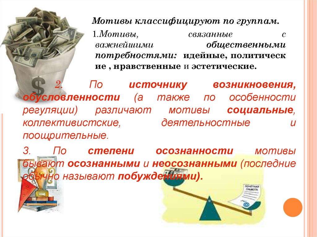 Мотивы классифицируют по группам.1.Мотивы,