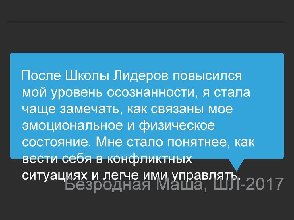 После Школы Лидеров повысилсямой уровень осознанности, я стала