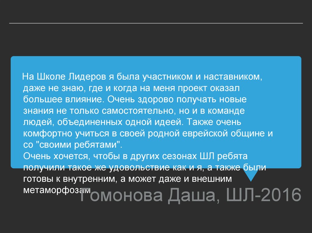 На Школе Лидеров я была участником и наставником,даже не знаю, где и когда на меня проект оказал