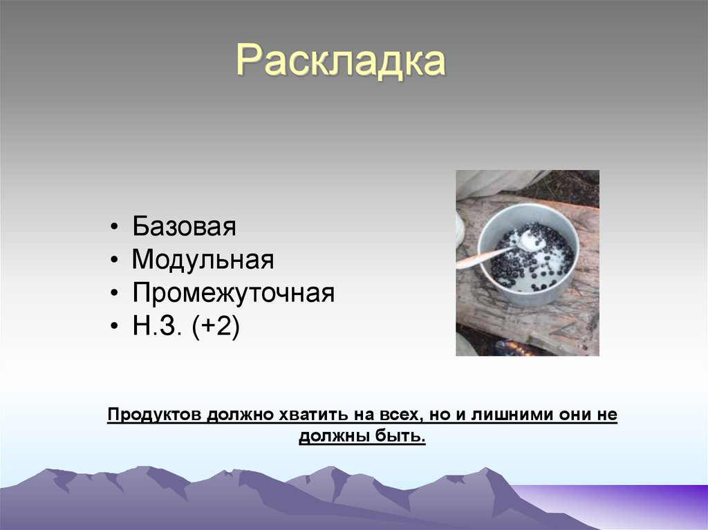 • При составлении раскладки для экспедиции