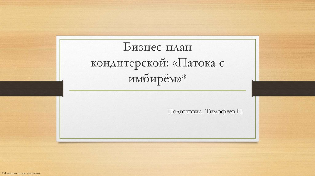 Бизнес-план кондитерской: «Патока с имбирём»*