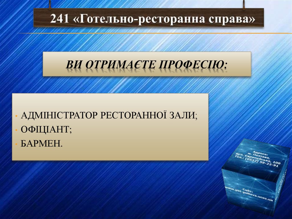 СПЕЦІАЛЬНІСТЬ241 «Готельно-ресторанна справа»