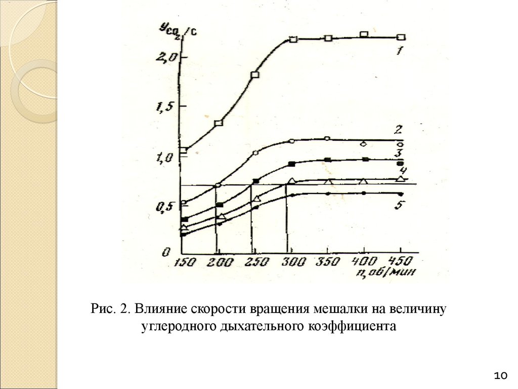 Рис. 2. Влияние скорости вращения мешалки на величинууглеродного дыхательного коэффициента