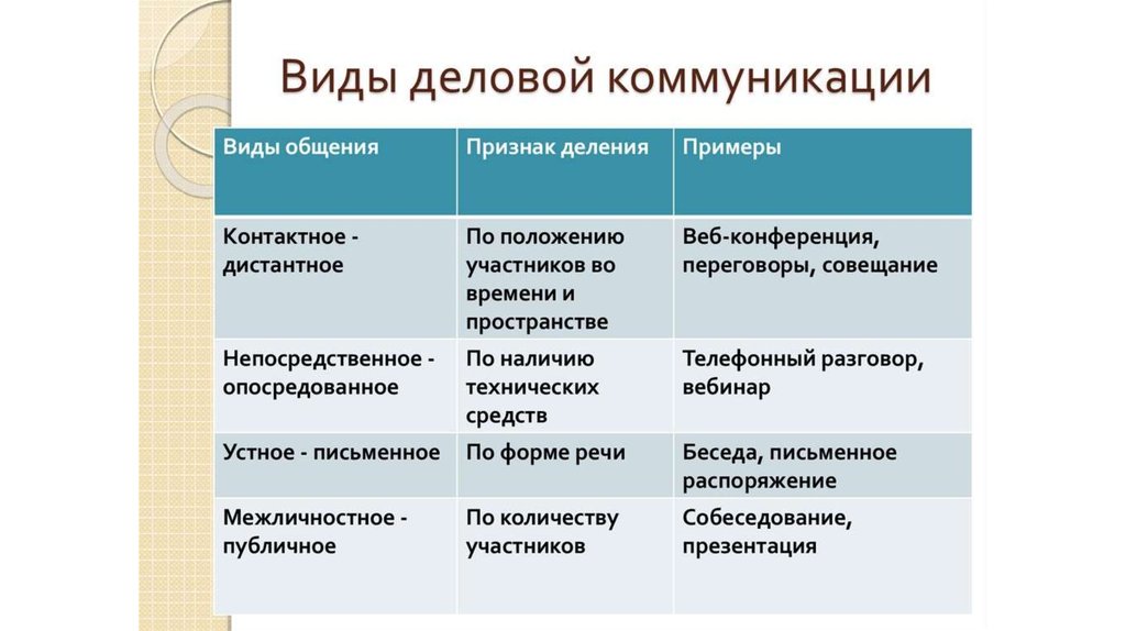 Виды деловых коммуникаций