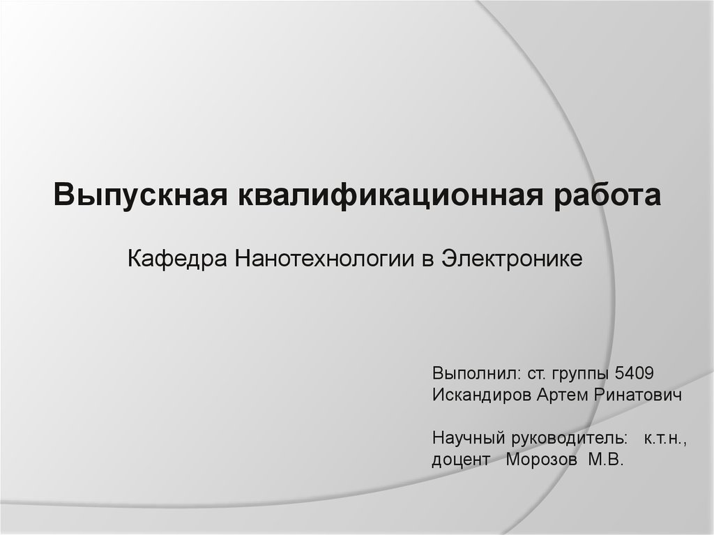 Выпускная квалификационная работаКафедра Нанотехнологии в Электронике