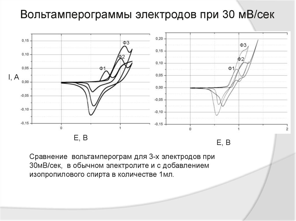 Вольтамперограммы электродов при 30 мВ/секФ3