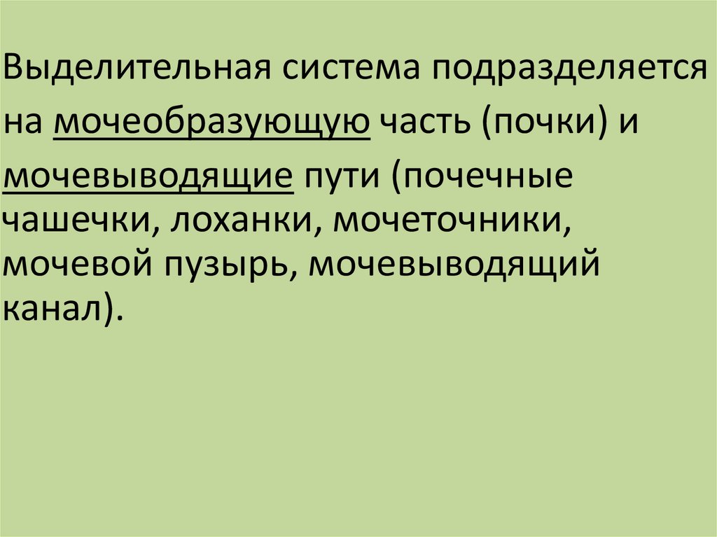 Выделительная система подразделяетсяна мочеобразующую часть (почки) и