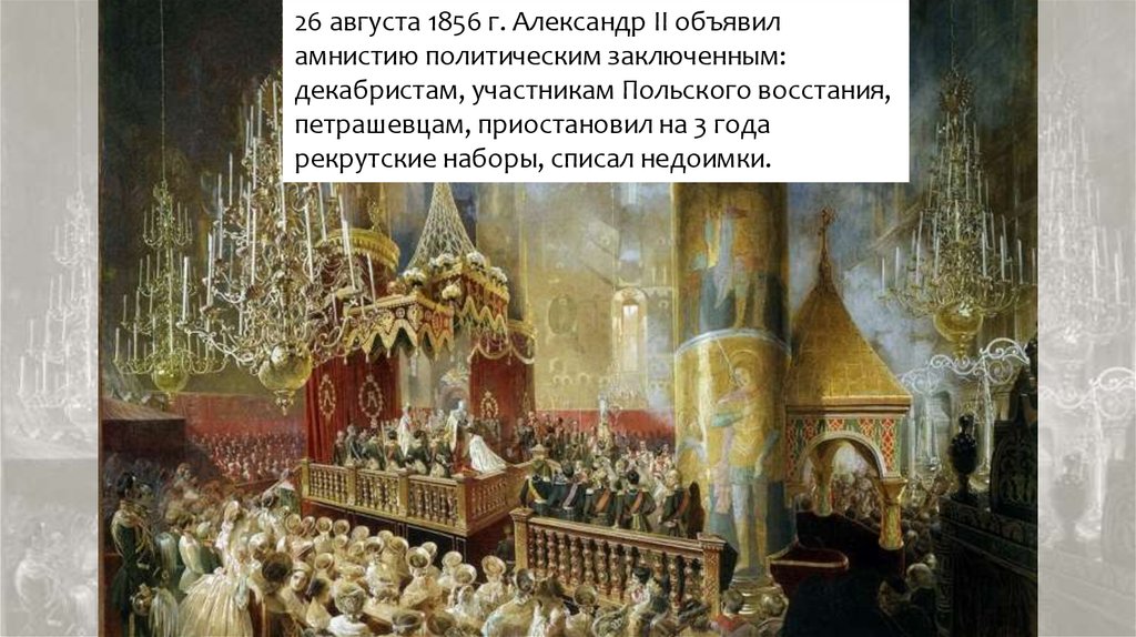 26 августа 1856 г. Александр II объявиламнистию политическим заключенным:
