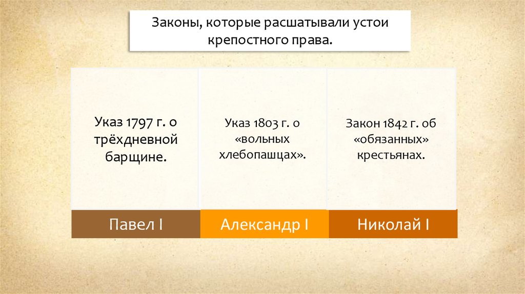 Законы, которые расшатывали устоикрепостного права.