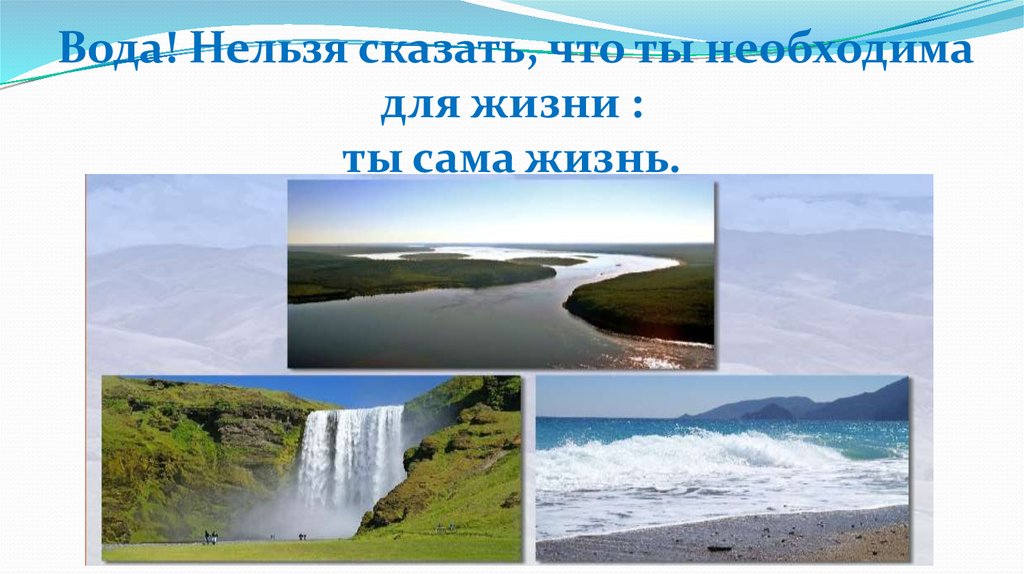 Вода! Нельзя сказать, что ты необходимадля жизни :