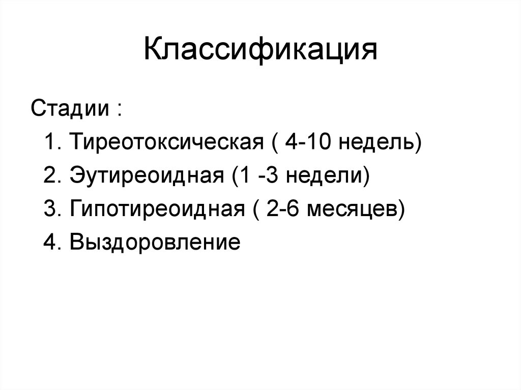 1. Тиреотоксическая ( 4-10 недель)