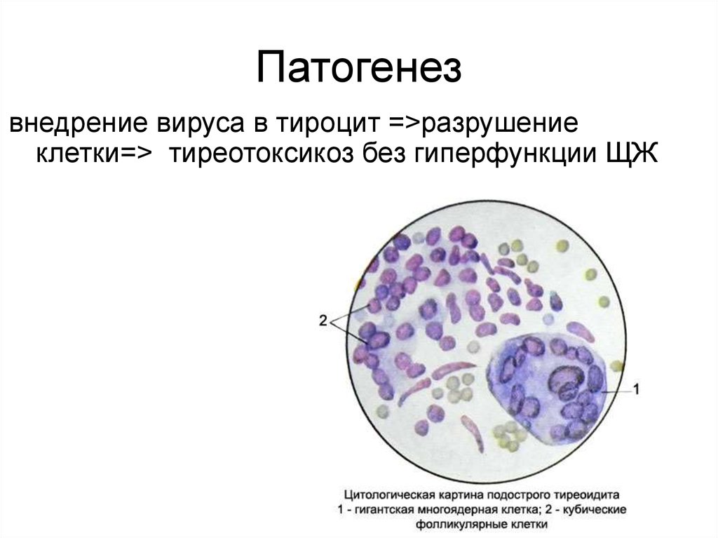 Патогенезвнедрение вируса в тироцит =>разрушение