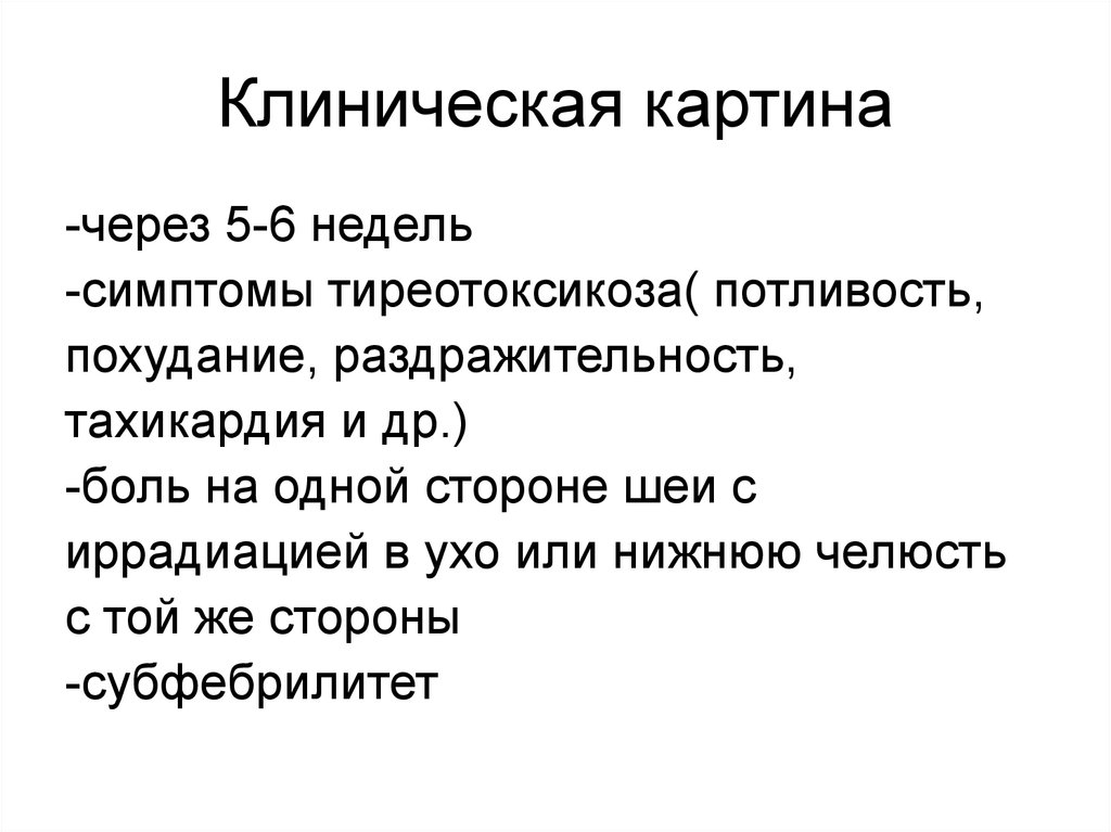 Клиническая картина-через 5-6 недель