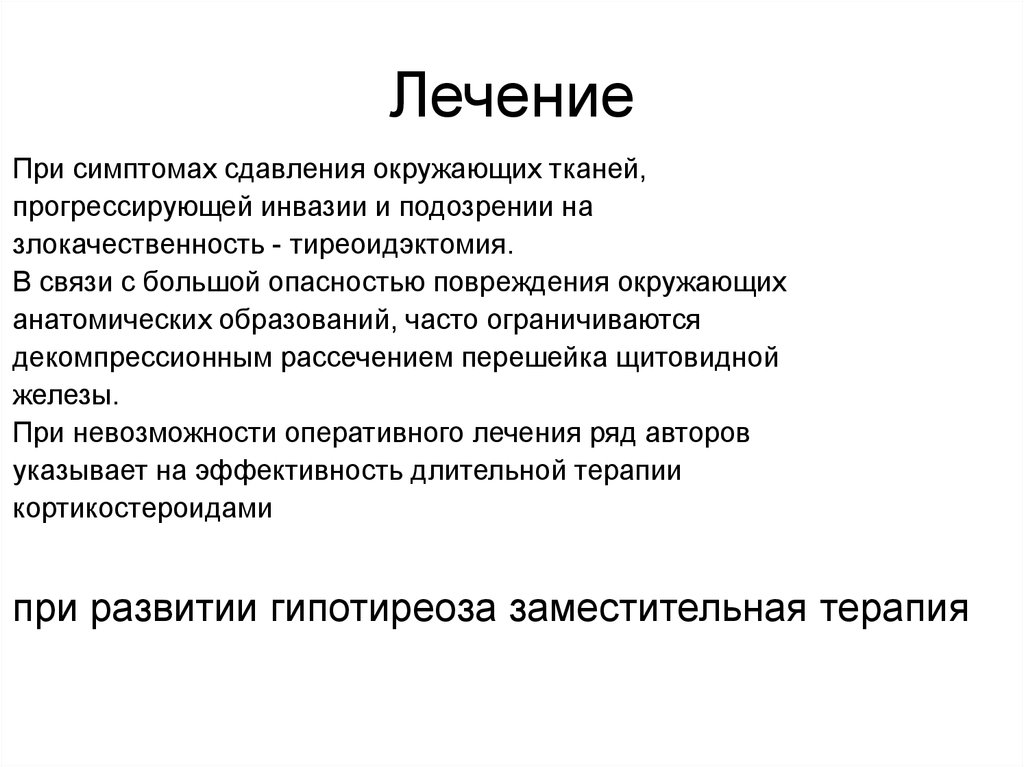 ЛечениеПри симптомах сдавления окружающих тканей,