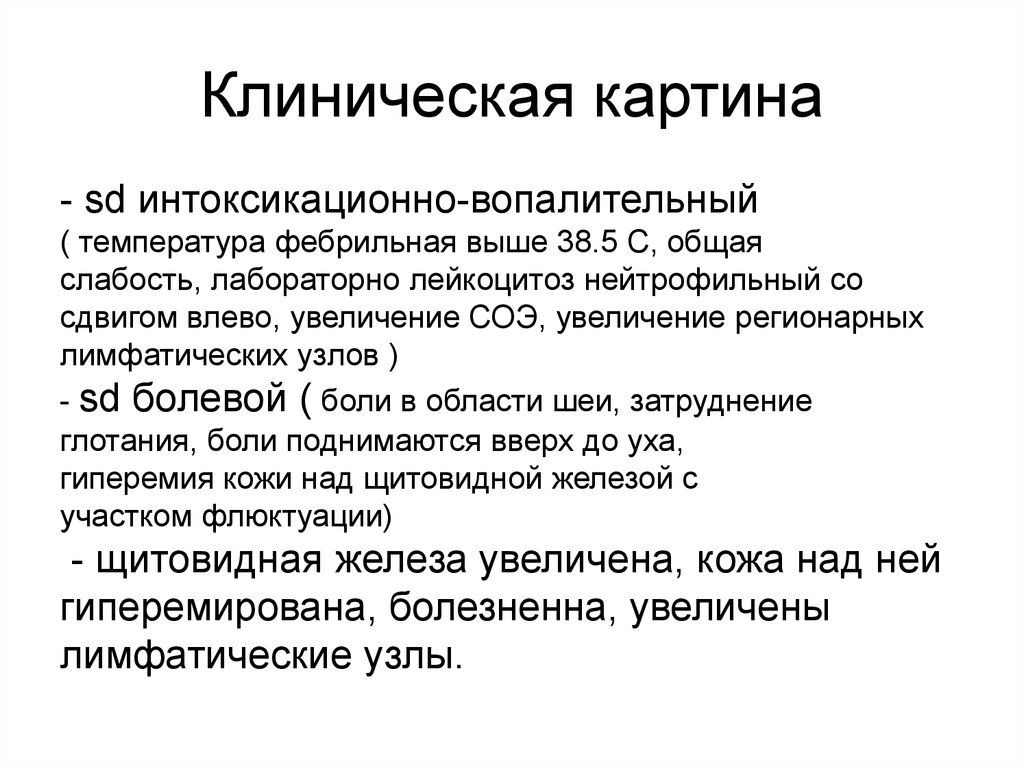 Клиническая картина- sd интоксикационно-вопалительный