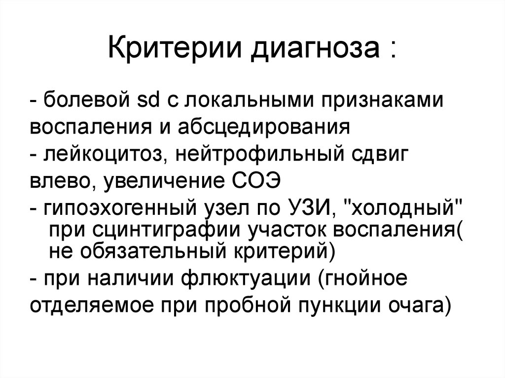 Критерии диагноза :- болевой sd с локальными признаками
