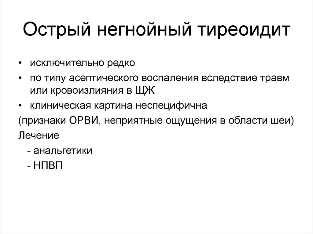 Острый негнойный тиреоидит• исключительно редко