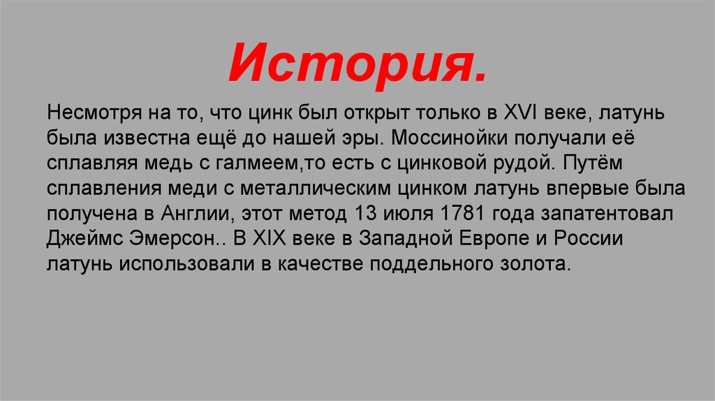 История.Несмотря на то, что цинк был открыт только в XVI веке, латунь