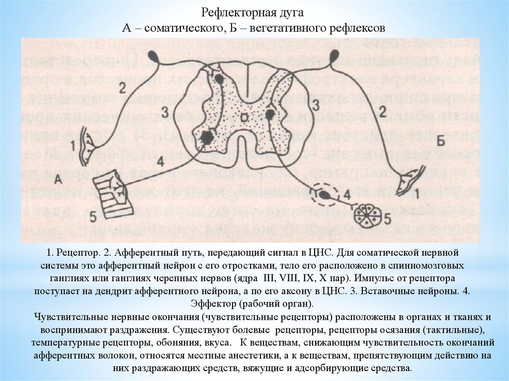 Рефлекторная дугаА – соматического, Б – вегетативного рефлексов