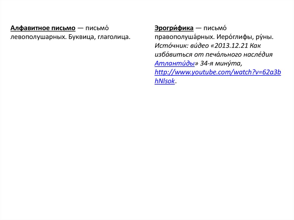 Алфавитное письмо — письмо́левополушарных. Буквица, глаголица.