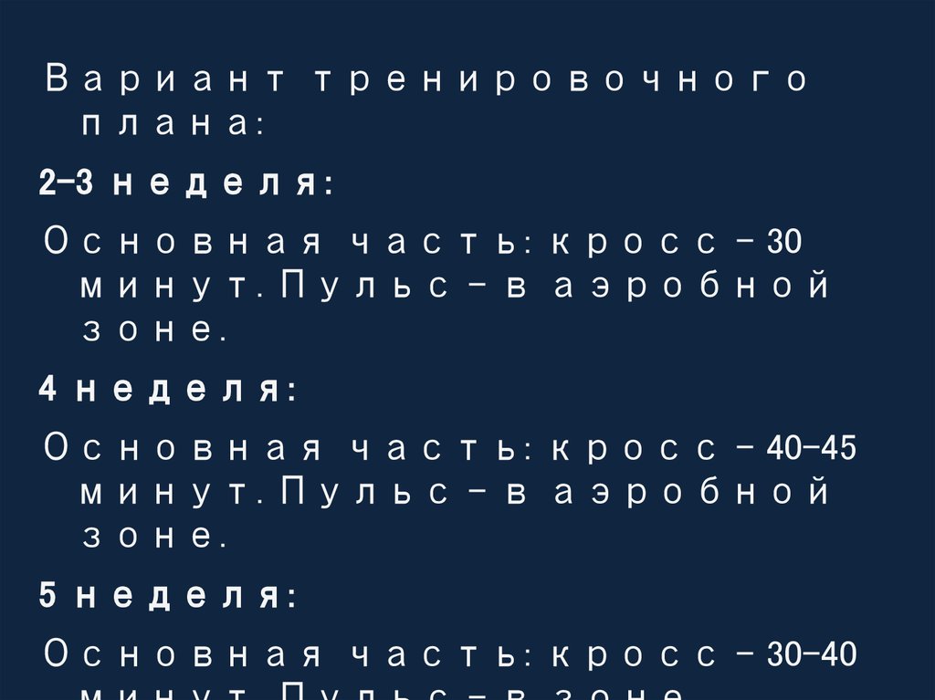 Вариант тренировочногоплана: