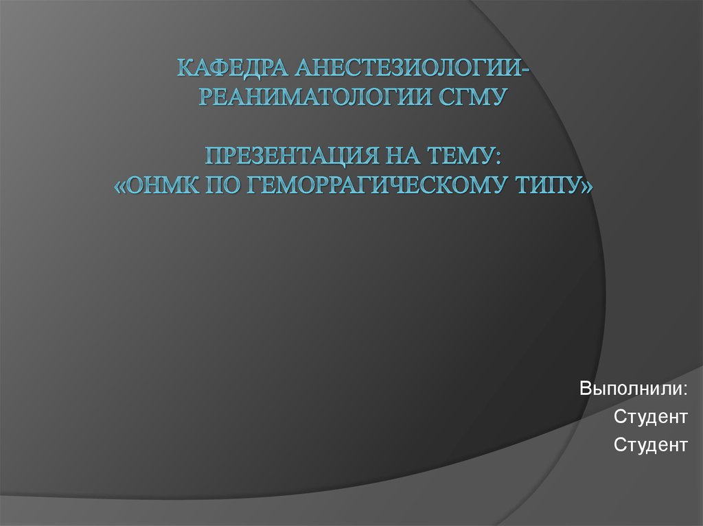 1. Кафедра анестезиологии-реаниматологии СГМУ Презентация на тему: «ОНМК по геморрагическому типу»