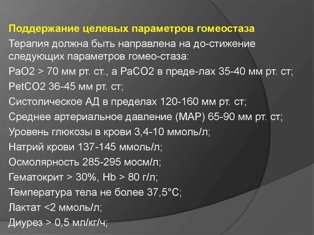 Поддержание целевых параметров гомеостазаТерапия должна быть направлена на до-стижение