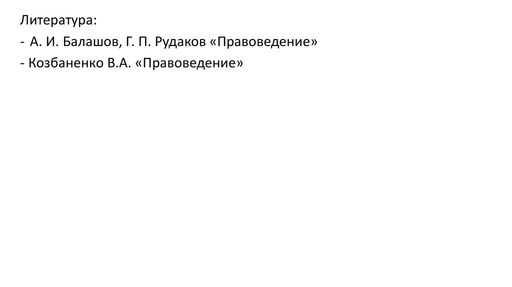 Литература:- А. И. Балашов, Г. П. Рудаков «Правоведение»