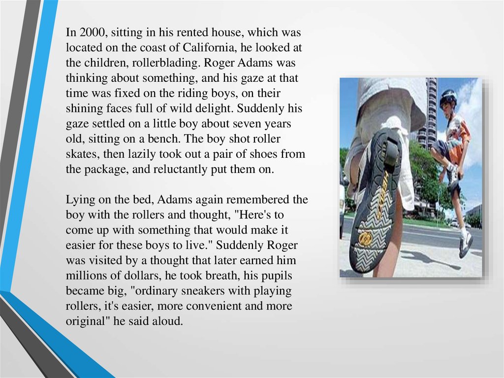The idea of combining conventional sneakersand rollers made Roger Adams a millionaire.