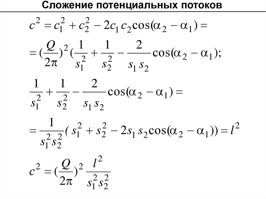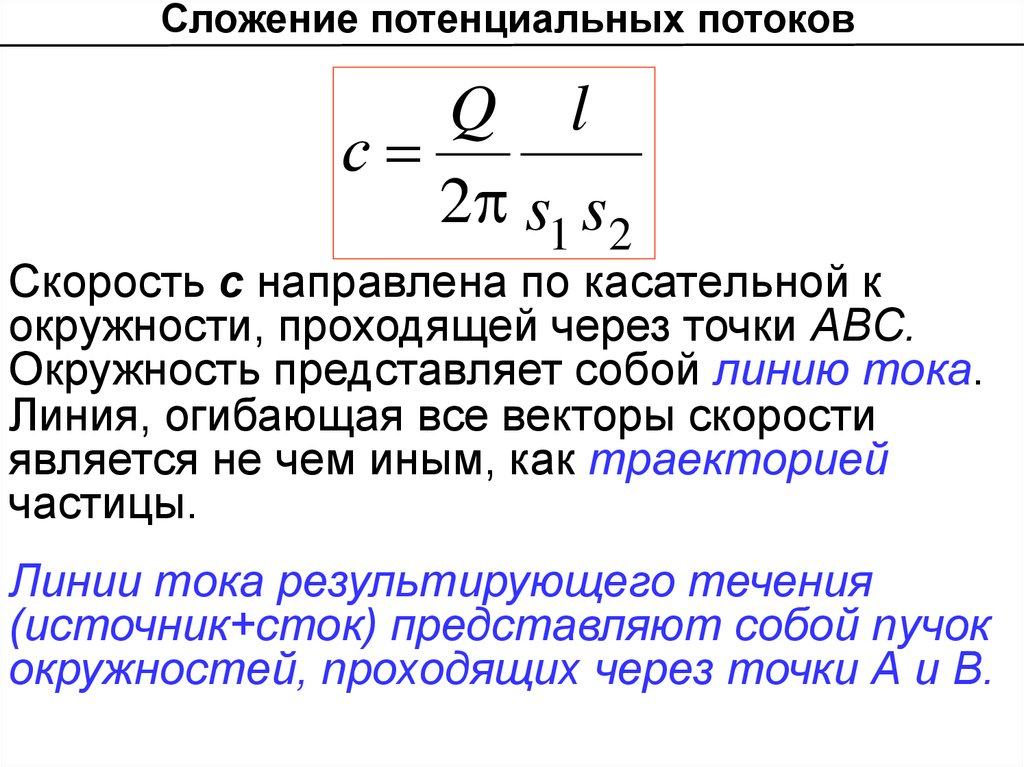Сложение потенциальных потоковЕсли поток является результатом сложения