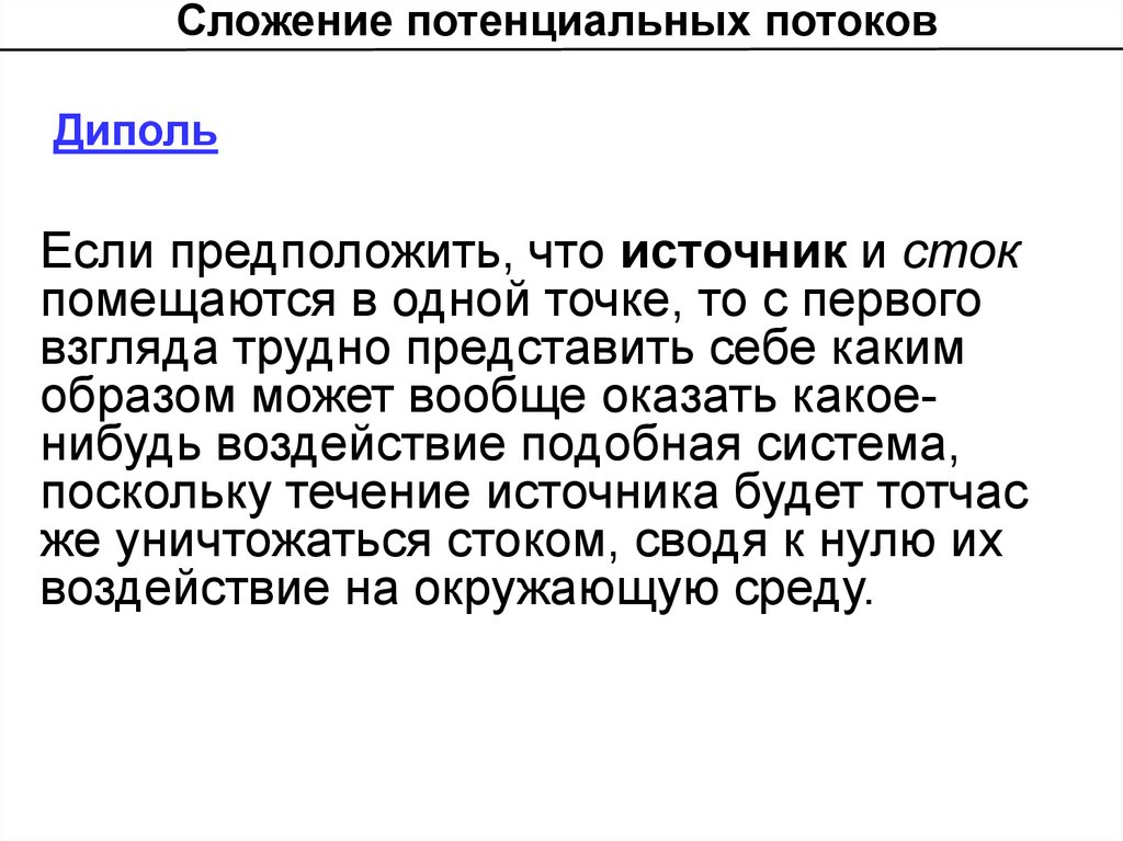 Сложение потенциальных потоковЭта пара «источник-сток» называется