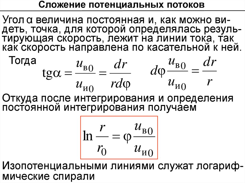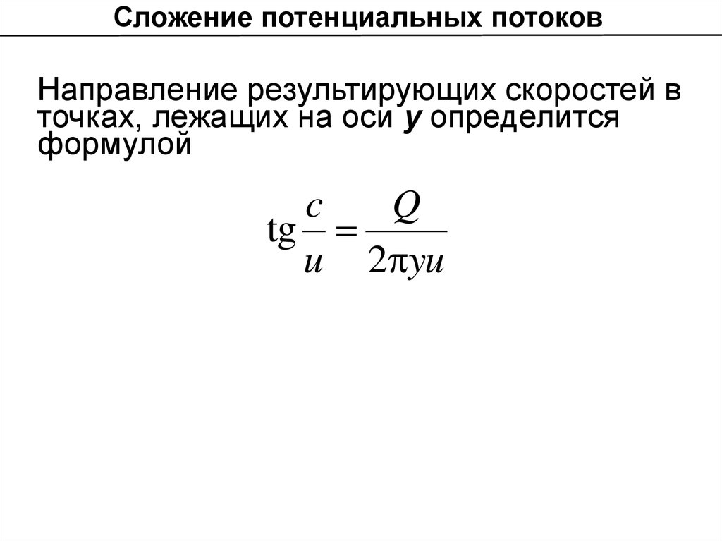 Сложение потенциальных потоковВидно, что угол наклона этих скоростей к оси