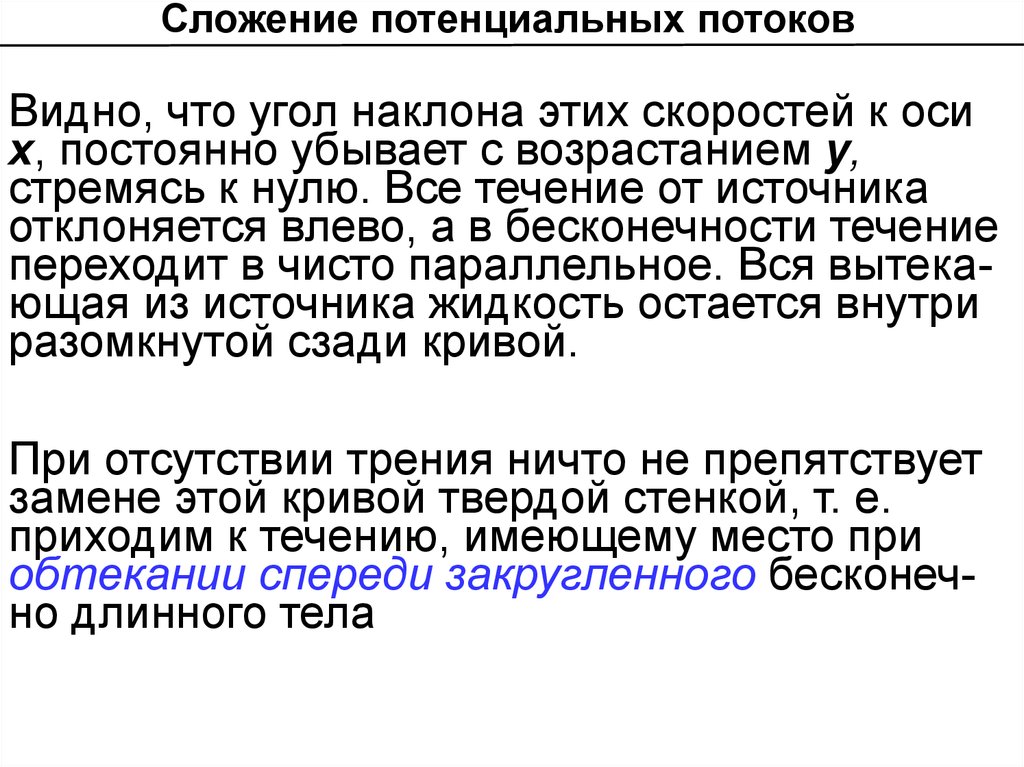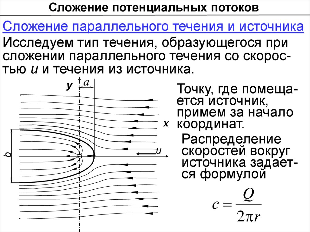 Сложение потенциальных потоковСложение параллельного течения с источником