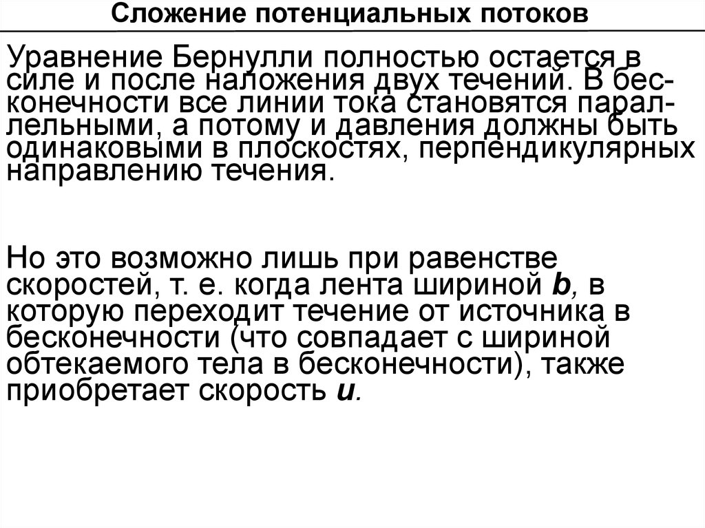 Сложение потенциальных потоковУравнение Бернулли полностью остается в