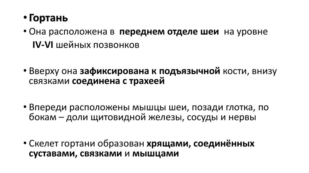 • Гортань• Она расположена в переднем отделе шеи на уровне