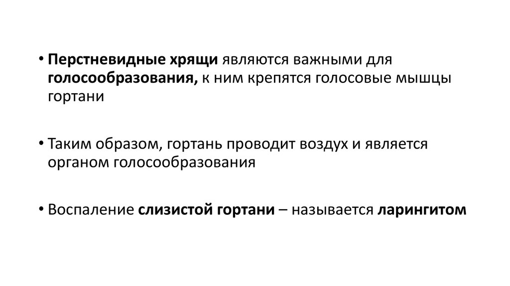 • Перстневидные хрящи являются важными дляголосообразования, к ним крепятся голосовые мышцы